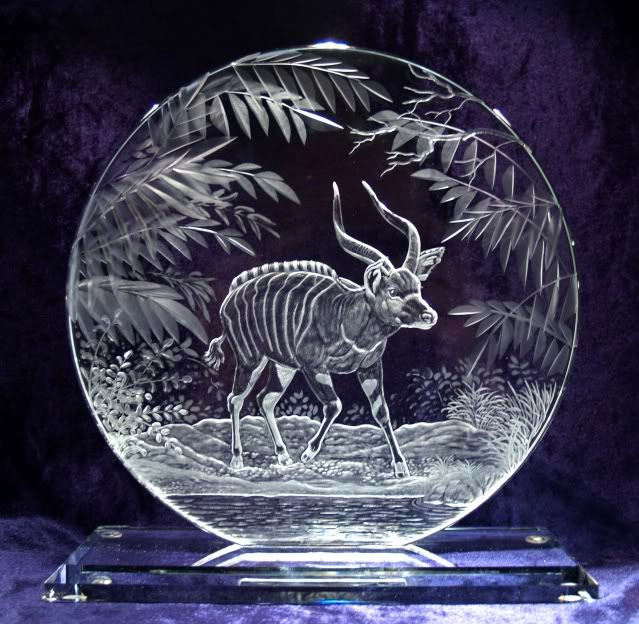 David Whyman excels in his African glasswork because he takes frequent African safaris and knows his wildlife animal subjects very well. You will find no 'cartoon' animals among David's designs - each animal is intrically engraved as it looks in real life and set in an African scene that it really would inhabit.